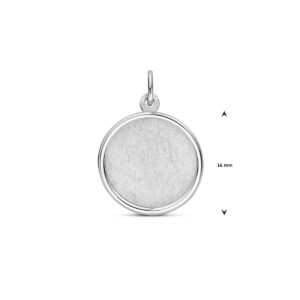 Gerhodineerd 925 zilveren graveerhanger met een totale hoogte van 22mm uitgevoerd in poli/ijsmat. De hanger heeft een totale hoogte van 16mm en een dikte van 0,8mm.