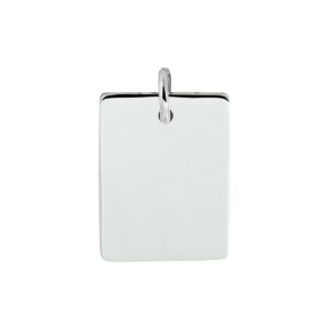 Gerhodineerd zilveren graveerhanger met een afmeting van 18x14mm. De hanger heeft een totale hoogte van 21mm.