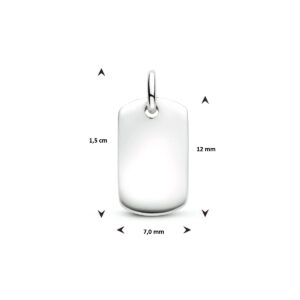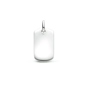 Deze mooie graveerhanger is volledig gemaakt van 925 sterling zilver, de allerbeste kwaliteit zilver, met een laagje rhodium wat ervoor zorgt dat de glans extra lang behouden blijft. Het sieraad bestaat uit een slank oogje, waar u gemakkelijk een ketting doorheen haalt, met daaronder een rechthoekig plaatje, waarop ruimte is voor een persoonlijke gravering naar keuze. Verder heeft de hanger een totale hoogte van 15 mm en een breedte van 7 mm. Het sieraad wordt geleverd zonder bijpassende ketting.