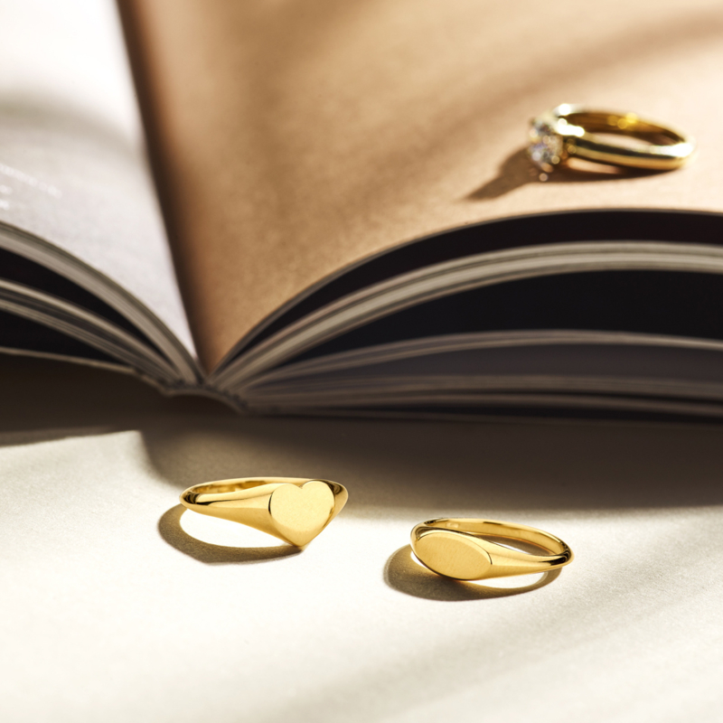Gouden Zegelring voor Dames met Letter(s) Gravure Vlak