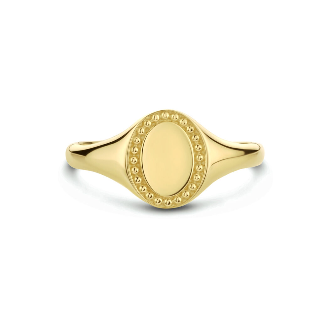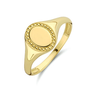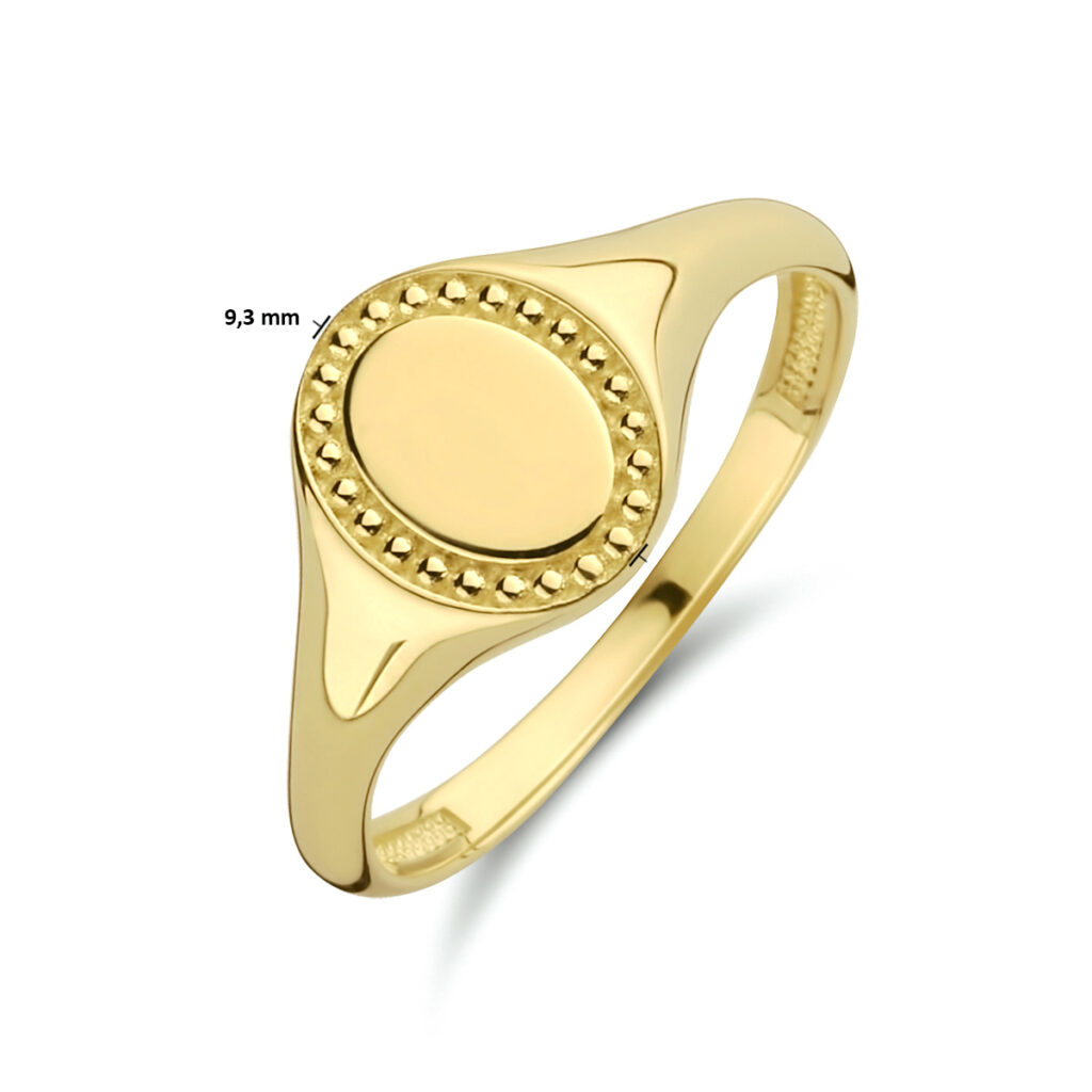 14k Geelgouden graveerring. De ring heeft een breedte van 9.3 mm.