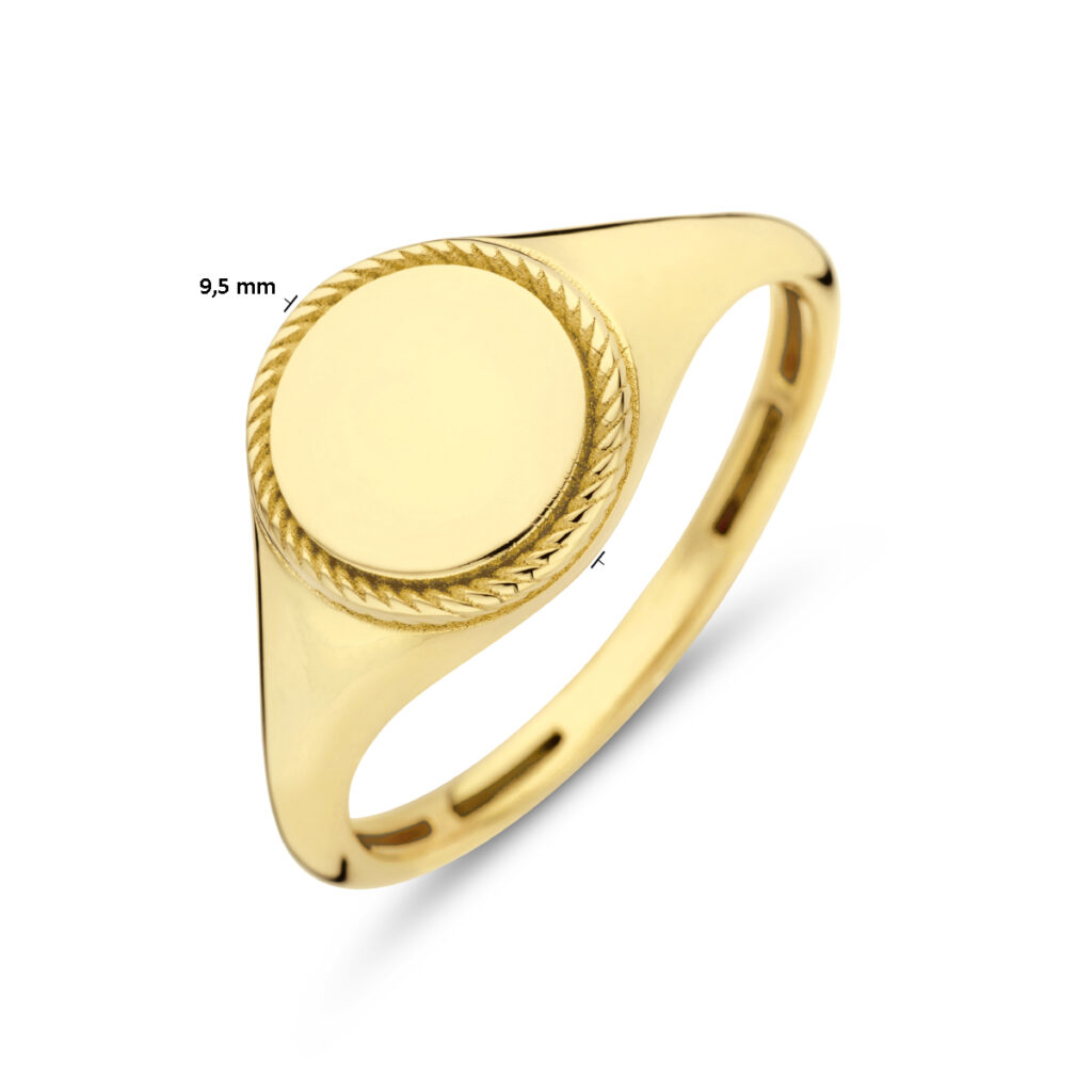 14k Geelgouden graveerring met een breedte van 9.5mm.