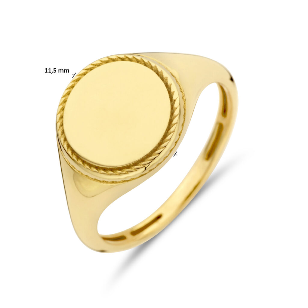 14k Geelgouden graveerring met een breedte van 11.5mm.