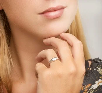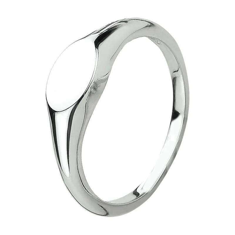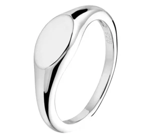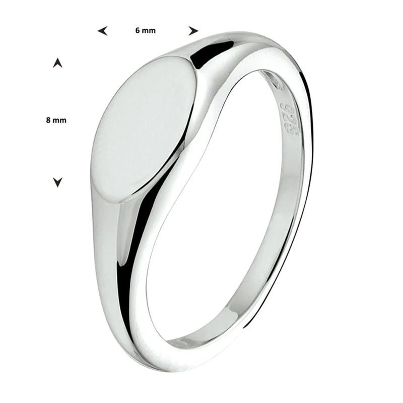 Deze graveerring voor dames is gemaakt van 925 sterling zilver, de allerbeste kwaliteit zilver, met een fijntjes gepolijst oppervlak dat mooi glanst met een laagje rhodium waardoor die glans extra lang behouden blijft. Deze ring bestaat uit een slanke, licht bolstaande strook zilver met aan de voorkant een ovaalvormig graveerplaatje waar u bijvoorbeeld een initiaal naar keuze op zou kunnen laten graveren. Deze ring heeft een breedte van 6mm en is uiteraard verkrijgbaar in diverse ringmaten.