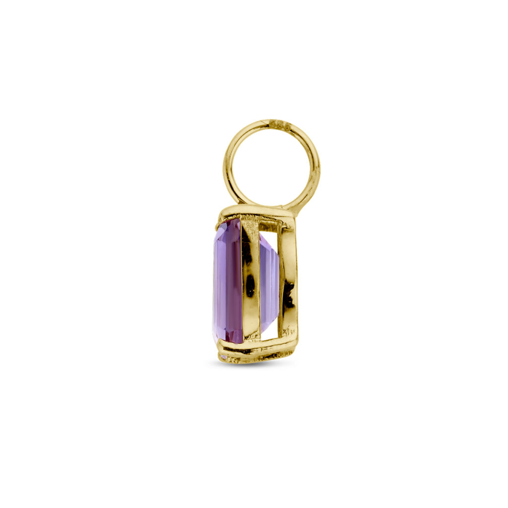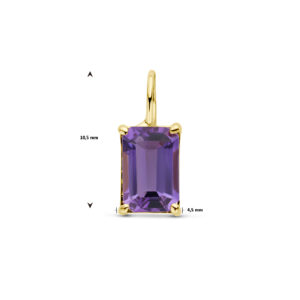 14k Geelgouden hanger uitgevoerd met amethist. De hanger heeft een afmeting van 10.5×4.5mm.