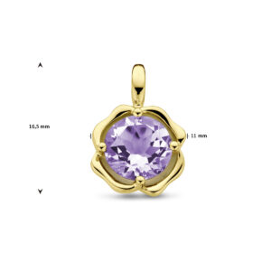 14k Geelgouden hanger uitgevoerd met amethist. De steen heeft een diameter van 8mm.