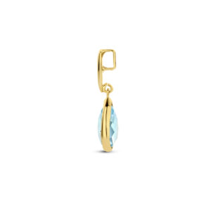 14k Geelgouden hanger uitgevoerd met een schitterende blauwe topaas. De hanger heeft een totale hoogte van 2cm.