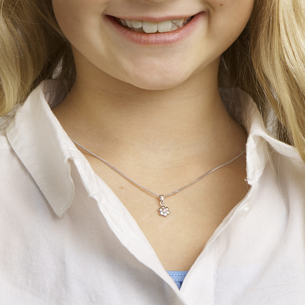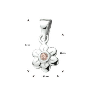 Gerhodineerd 925 zilveren hanger uitgevoerd met een bloem en een schitterende roze zirkonia. De hanger heeft een totale hoogte van 1.4cm. De afmeting van de hanger is 10×6.5mm.