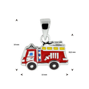 Deze brandweerauto hanger met emaille is gemaakt van 925 sterling zilver, de allerbeste kwaliteit zilver, met een fijntjes gepolijst oppervlak dat mooi glanst en een laagje rhodium waardoor die glans extra lang behouden blijft. Deze hanger bestaat uit een oogje waar u gemakkelijk een ketting naar keuze doorheen haalt, met daaronder een hanger in de vorm van een brandweerauto die is gekleurd met rode, blauwe en gele emaille. Deze hanger heeft een afmeting van 13x14mm en is zeer leuk voor kinderen.