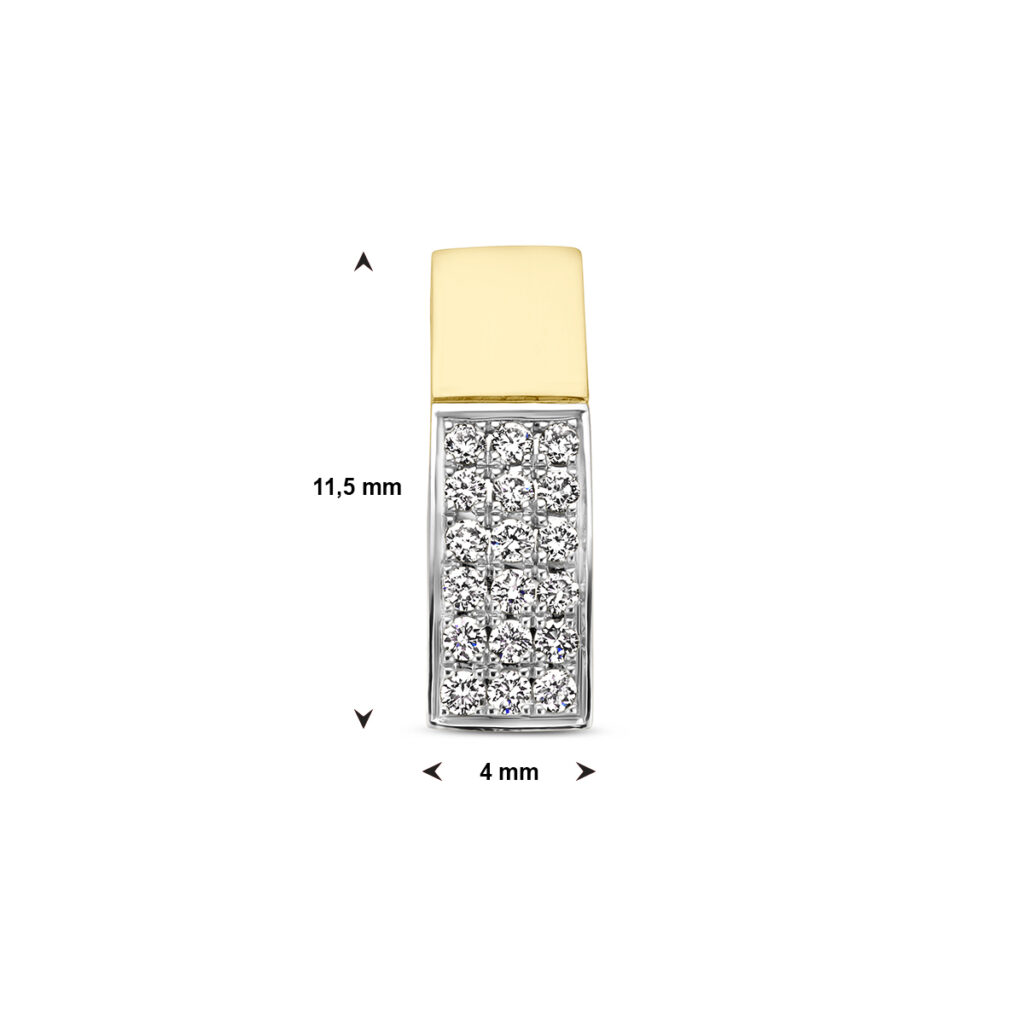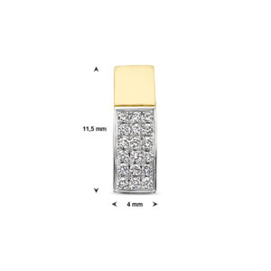 14k Bi-color geel- en witgouden hanger uitgevoerd met diamanten. De hanger heeft een afmeting van 11.5x4mm.