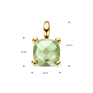 14k Geelgouden hanger uitgevoerd met groen amethist. De hanger heeft een afmeting van 13.5×8.5mm.