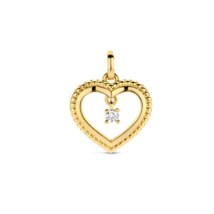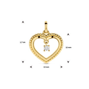 14k Geelgouden hart hanger met een schitterende diamant. Het hart heeft een afmeting van 12x13mm.