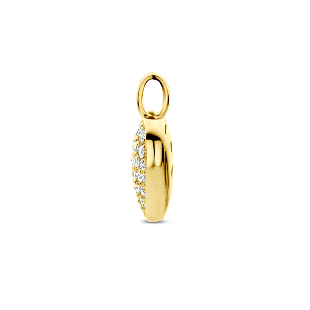 14k Geelgouden hanger in de vorm van een hart uitgevoerd met diamanten.