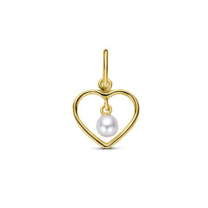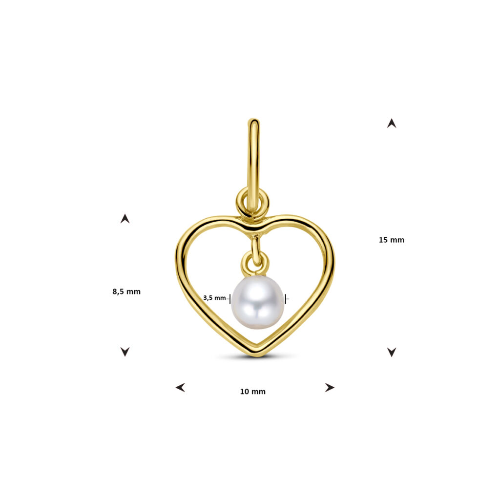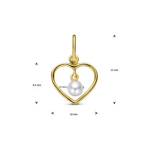 14k Geelgouden hanger uitgevoerd met een parel en een hart van 8.5x10mm. De hanger heeft een totale hoogte van 15mm.