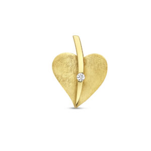 14k Geelgouden hanger uitgevoerd in vorm van een hart en een schitterende diamant daarin. Het hangertje heeft een afmeting van 19.5x15mm.
