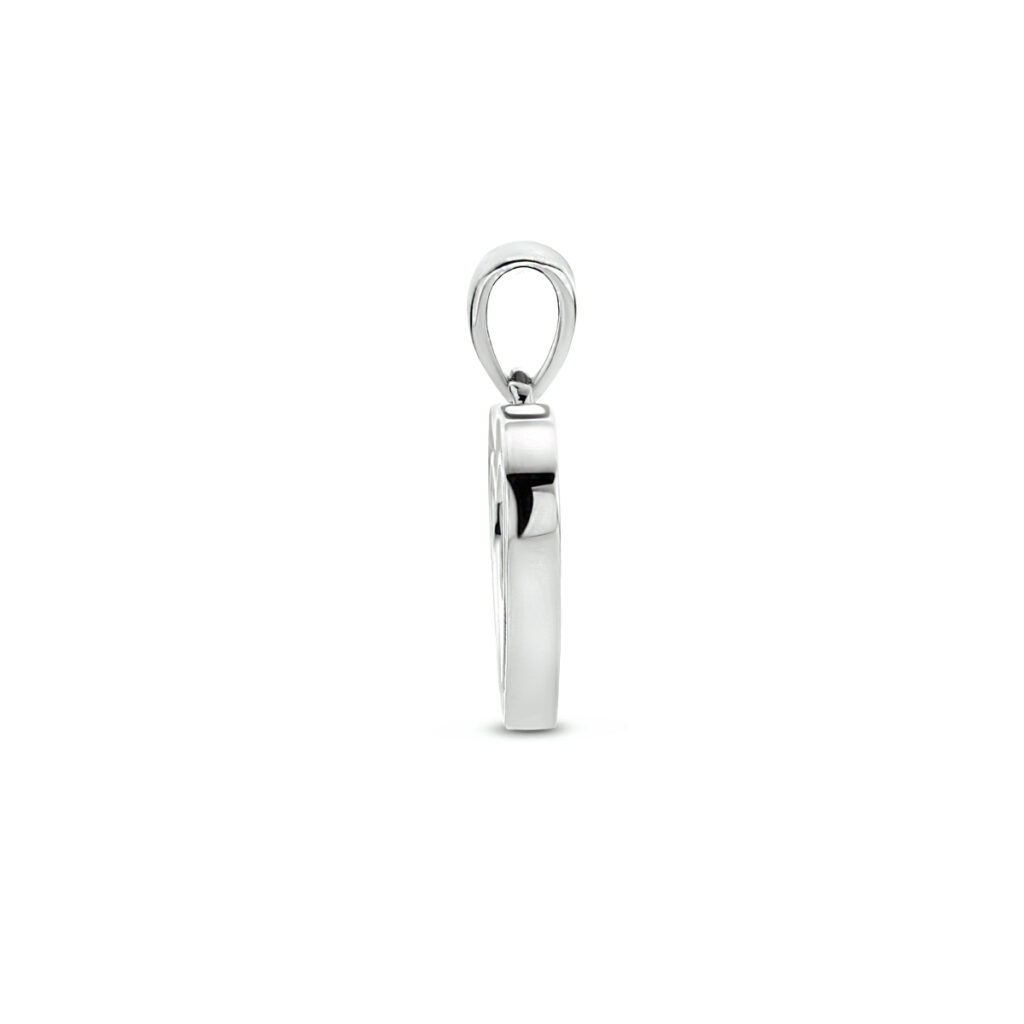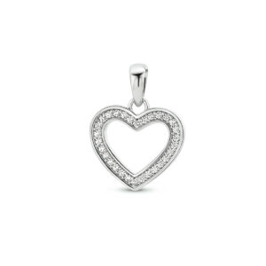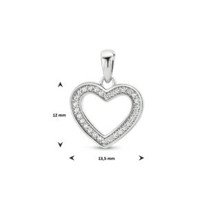 Gerhodineerd 925 zilveren hanger in de vorm van een hartje uitgevoerd met een schitterende zirkonia rij. De hanger heeft een totale hoogte van 1.8cm en een breedte van 13.5mm.