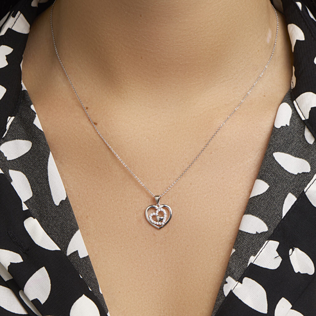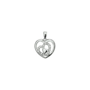 Gerhodineerd zilveren hanger met een hart en zirkonia.