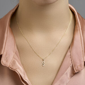 Geelgouden hanger met een infinity teken en zirkonia.