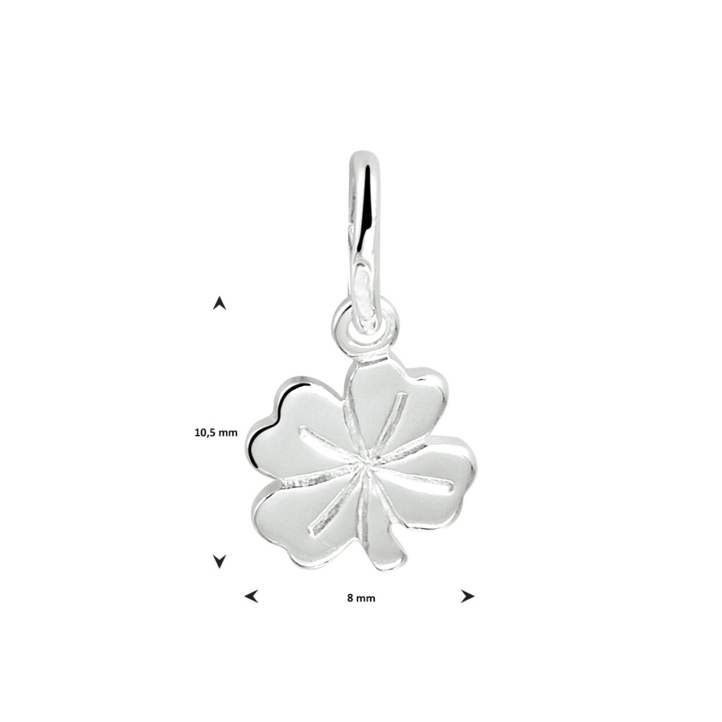 Zilveren hanger met een klavertje.