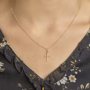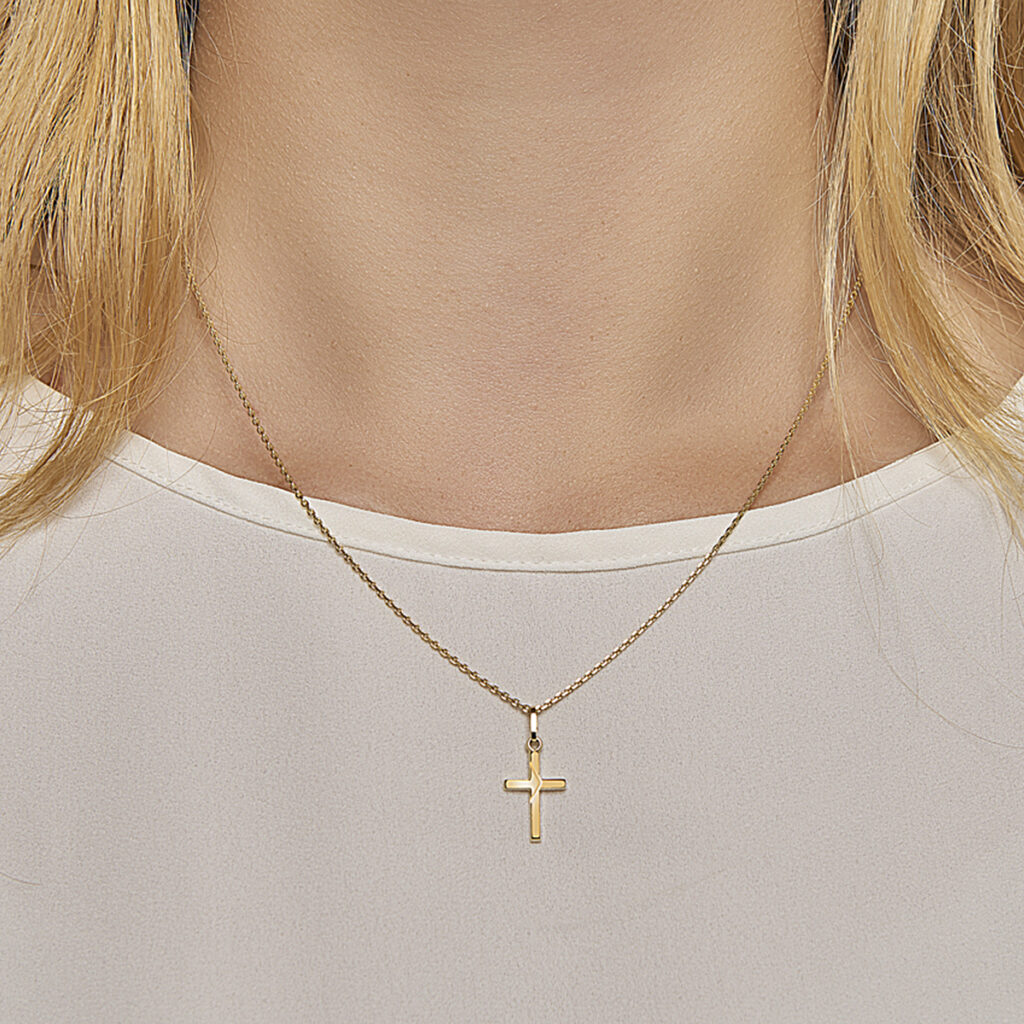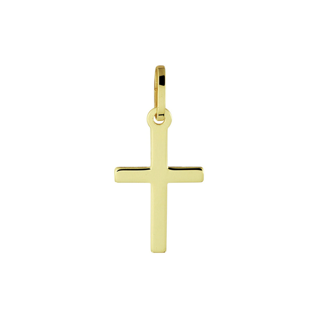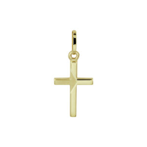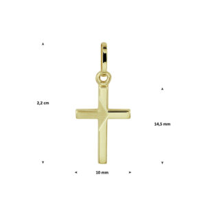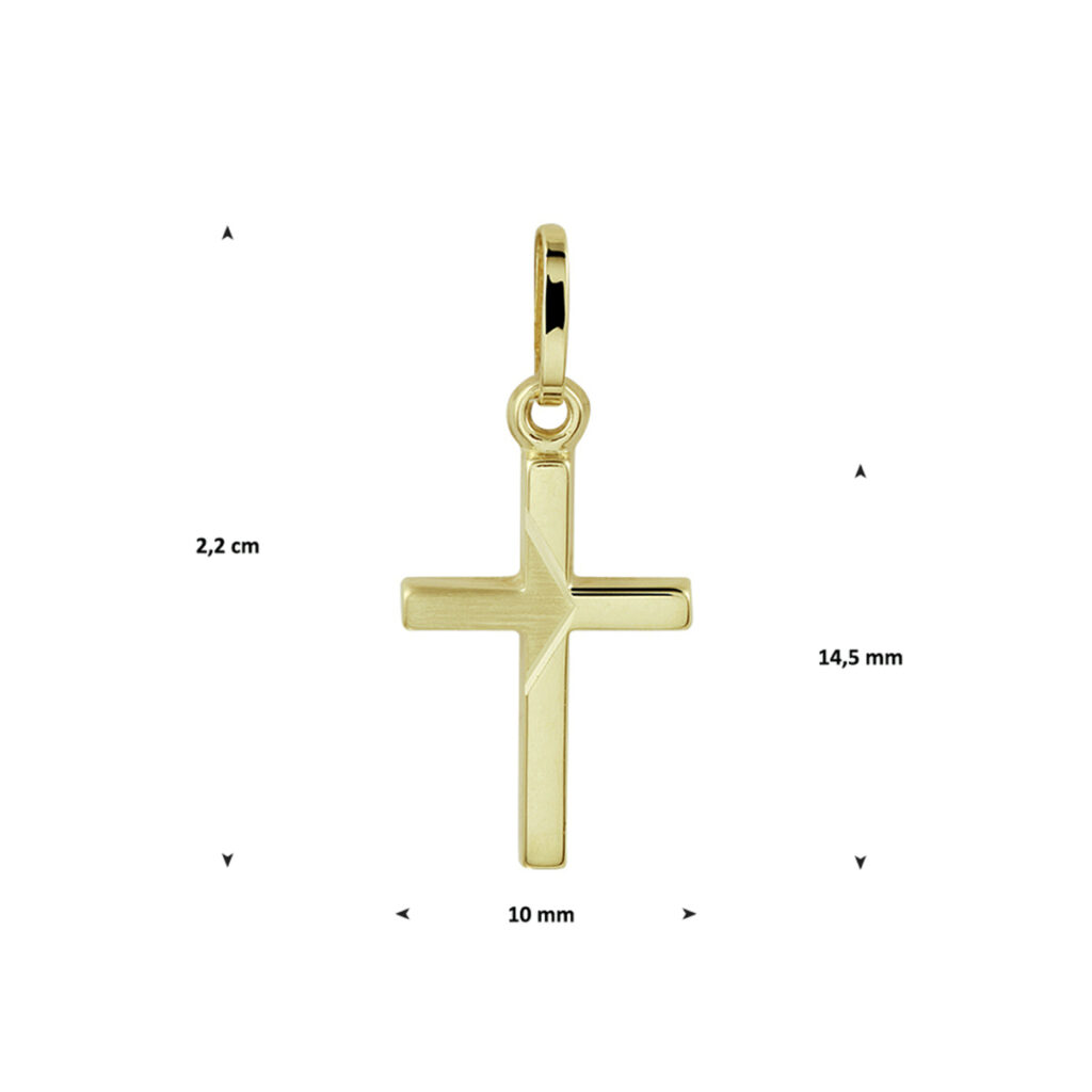 14k Geelgouden hanger in de vorm van een kruis. Het kruis heeft een afmeting van 14.5x10mm.