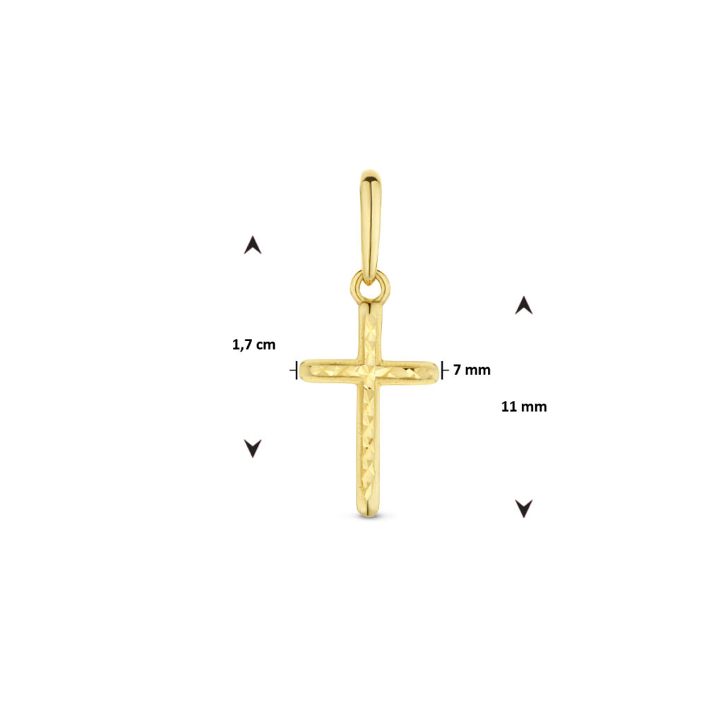 14k Geelgouden kruishanger. Het kruis heeft een afmeting van 11x7mm.