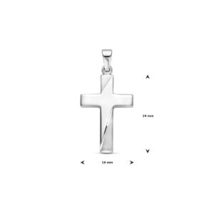 Gerhodineerd 925 zilveren hanger in de vorm van een kruis. De hanger heeft een drie delige bewerking gematteerd, gepolijst en gediamanteerd. De hanger heeft een totale hoogte van 28mm en een afmeting van 24x14mm.