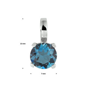 Deze hanger is volledig gemaakt van 14 karaats witgoud, de allerbeste kwaliteit witgoud, en voorzien van een fijntjes gepolijst oppervlak dat mooi glanst. Deze hanger bestaat uit een slank oogje waar u gemakkelijk een ketting naar keuze doorheen haalt, met daaronder een rond plaatje dat aan de voorkant voorzien is van een beeldschone blauwe Topaas edelsteen die mooi glinstert. Deze hanger heeft een afmeting van 7x13mm.