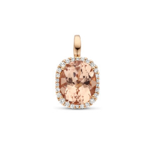 14k Rosegouden hanger uitgevoerd met een diamant rij en een schiterende morganiet steen van 12x10mm.