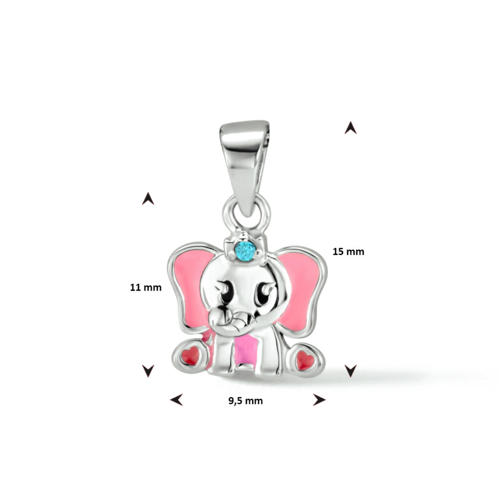 Gerhodineerd 925 zilveren hanger uitgevoerd in de vorm van een olifant. De hanger is uitgevoerd met een blauwe zirkonia.