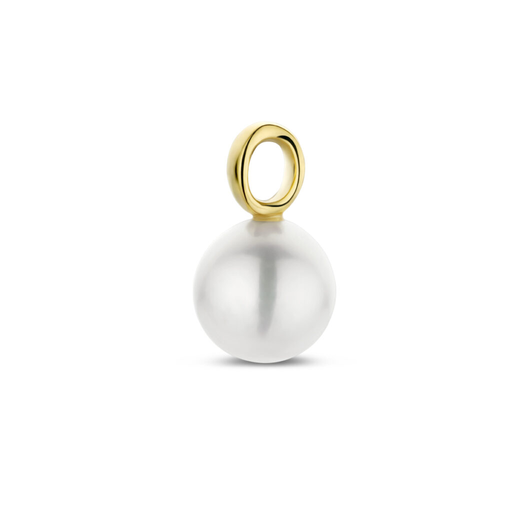 14k Geelgouden hanger uitgevoerd met een schitterende zoetwaterparel. De hanger heeft een totale hoogte van 16.5mm.