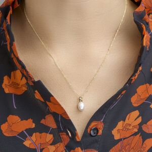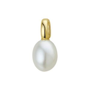 Geelgouden hanger met zoetwaterparel.
