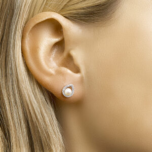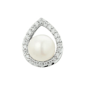 Gerhodineerd zilveren hanger met zirkonia en zoetwaterparel. De hanger is onderdeel van een set.