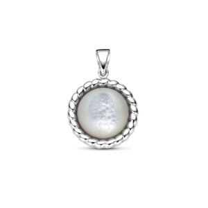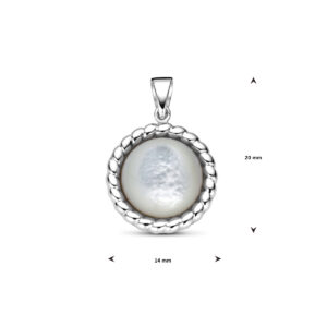 Gerhodineerd 925 zilveren hanger uitgevoerd met parelmoer. De hanger heeft een totale hoogte van 20mm.