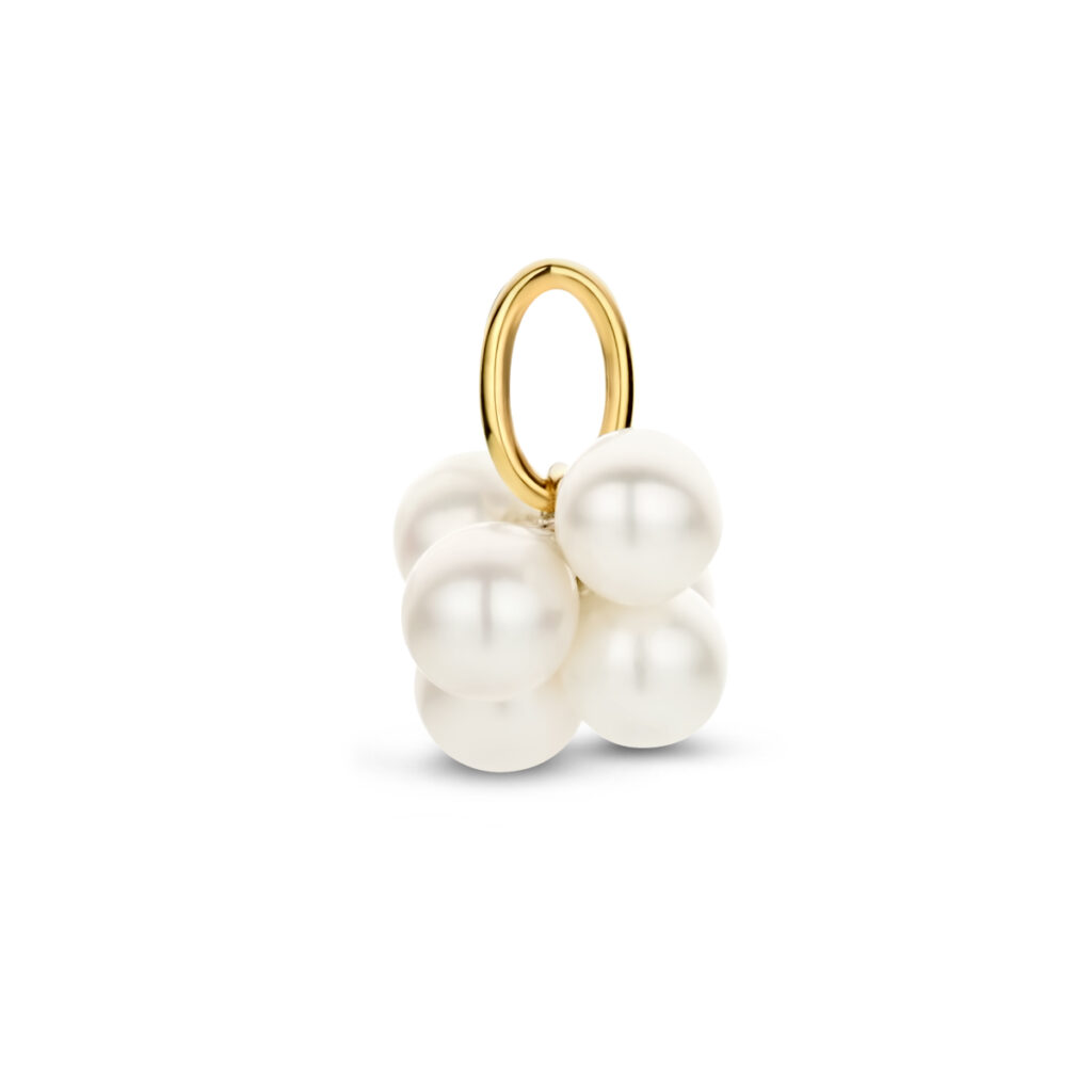14k Geelgouden hanger uitgevoerd met zoetwaterparels van 4,0mm.