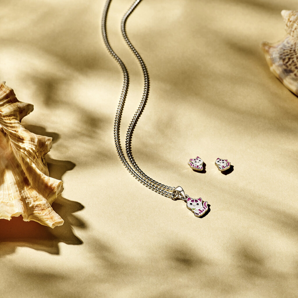 Gerhodineerd 925 zilveren poes hanger. De hanger heeft een totale hoogte van 1.5cm.