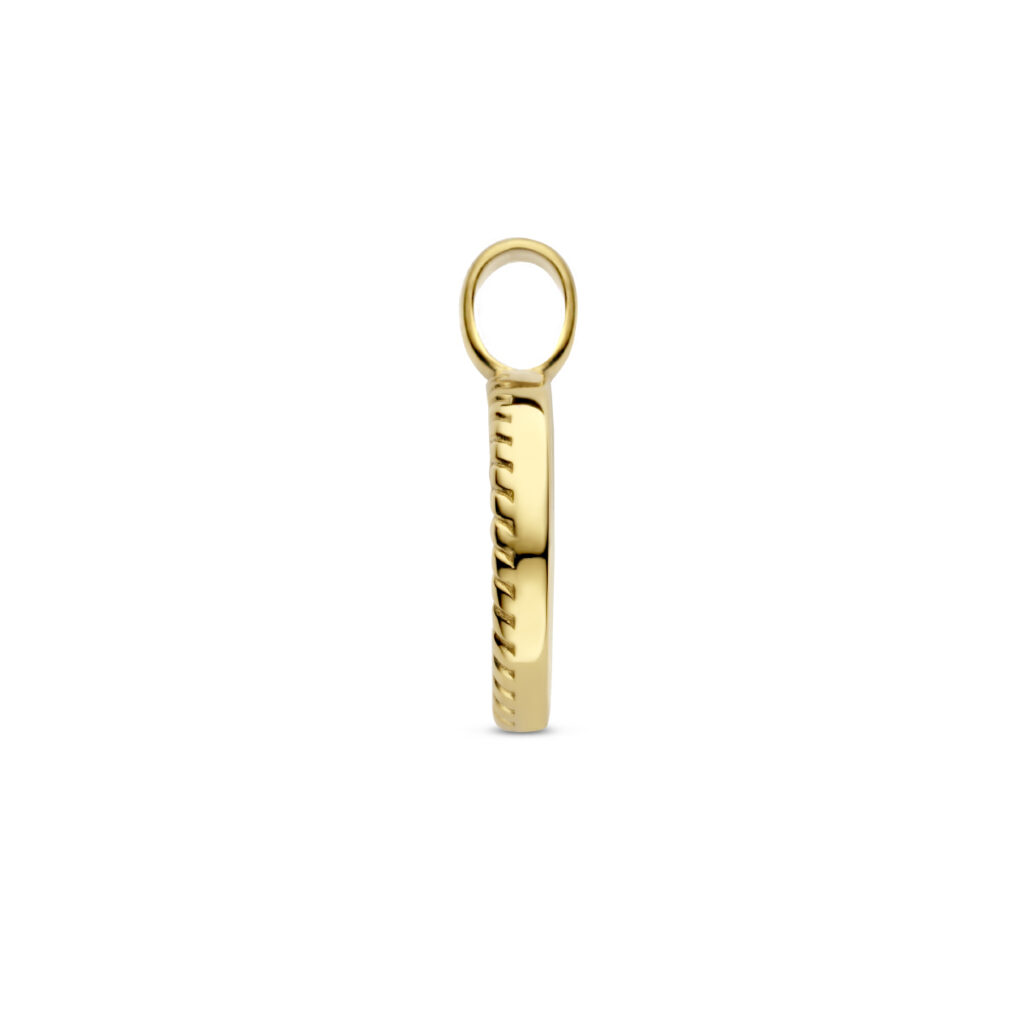 Stalen hanger met goudkleurige ion plating uitgevoerd met onyx. De hanger heeft een diameter van 22.5mm.