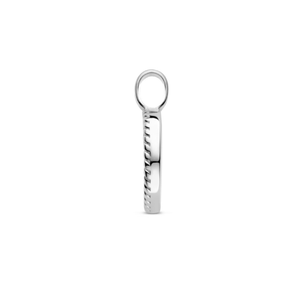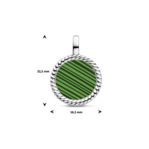 Stalen hanger uitgevoerd met synthetisch malachiet. De hanger heeft een diameter van 16.5mm.
