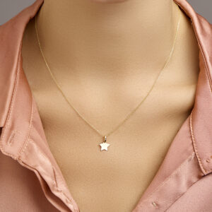 Geelgouden hanger met een totale hoogte van 1.4cm uitgevoerd met een poli ster van 9.9×9.8mm en stevig hangoog.
