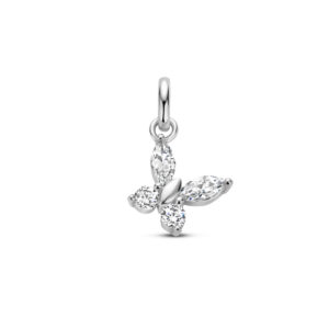 Gerhodineerd 925 zilveren hanger in de vorm van een vlinder met zirkonia. De hanger heeft een totale hoogte van 17mm.