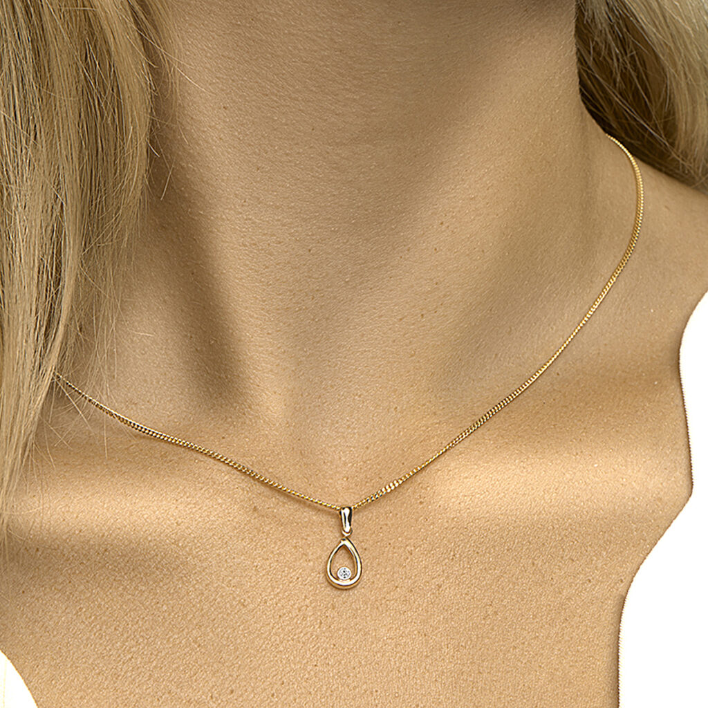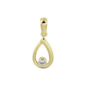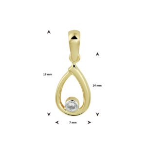 14k Geelgouden hanger uitgevoerd met een heldere zirkonia. De hanger heeft een totale hoogte van 1.8cm en een breedte van 7mm.