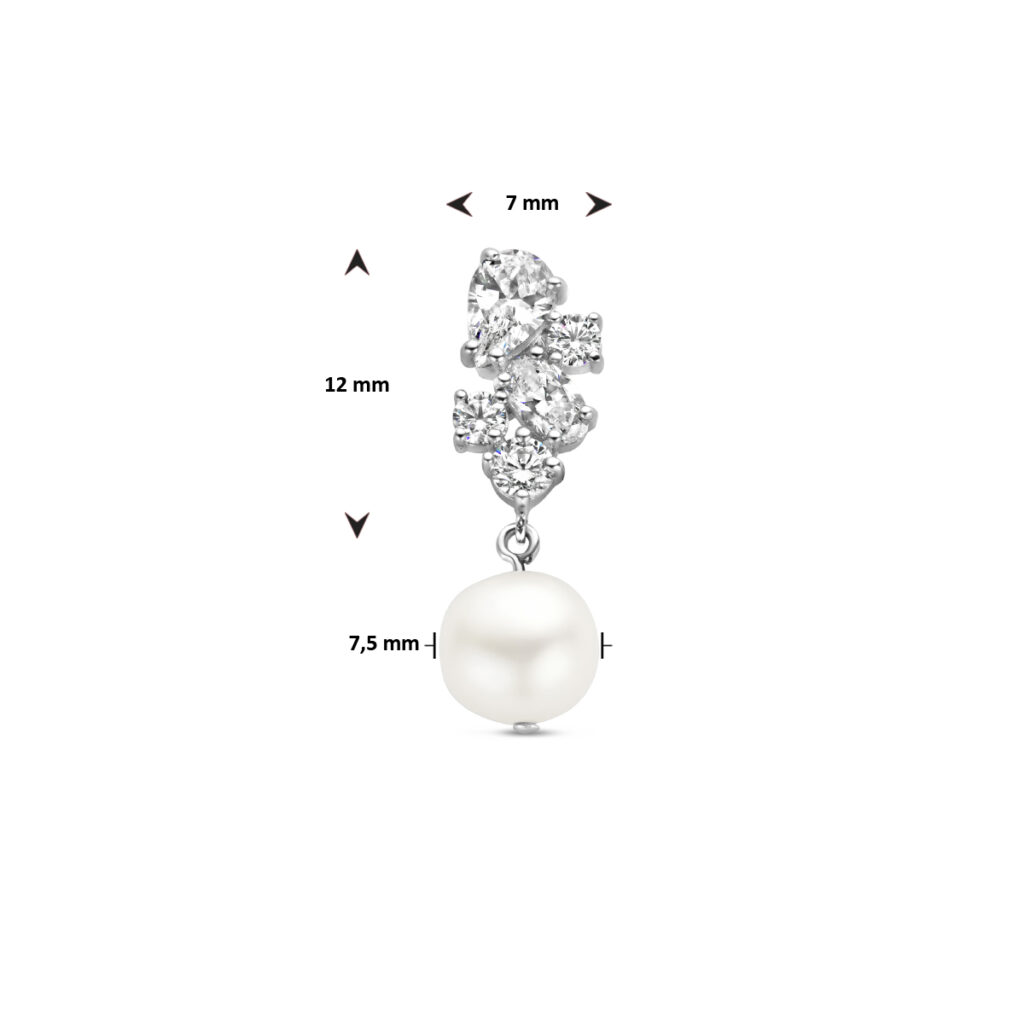 Gerhodineerd 925 zilveren hanger uitgevoerd met schitterende zirkonia en parel. De hanger heeft een afmeting van 12x7mm.