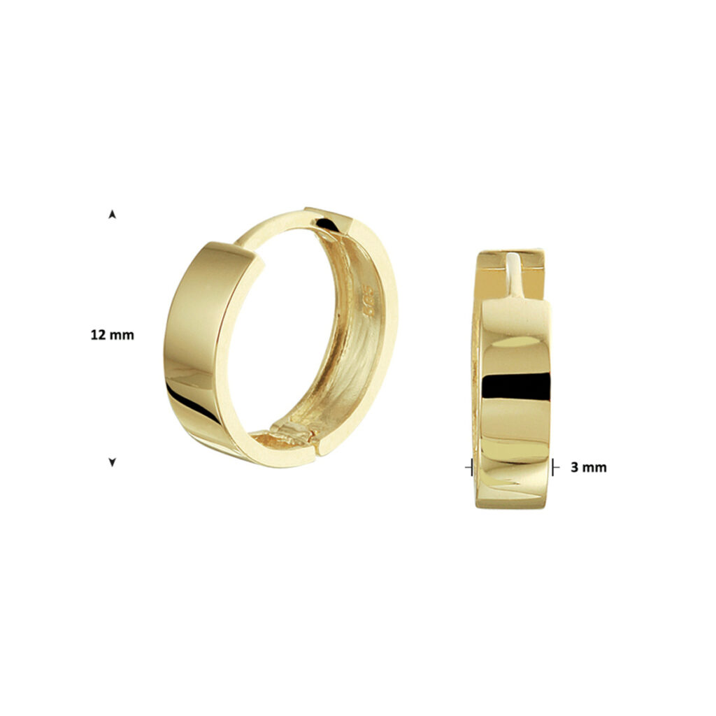 Klassieke 14k geelgouden oorringen met scharnier, met een afmeting van 12x3mm uitgevoerd met een stevige scharnier sluiting. Door het simplistische design zijn deze oorringen perfect te combineren met andere sieraden uit onze collectie of vanuit je eigen sieraden stash.