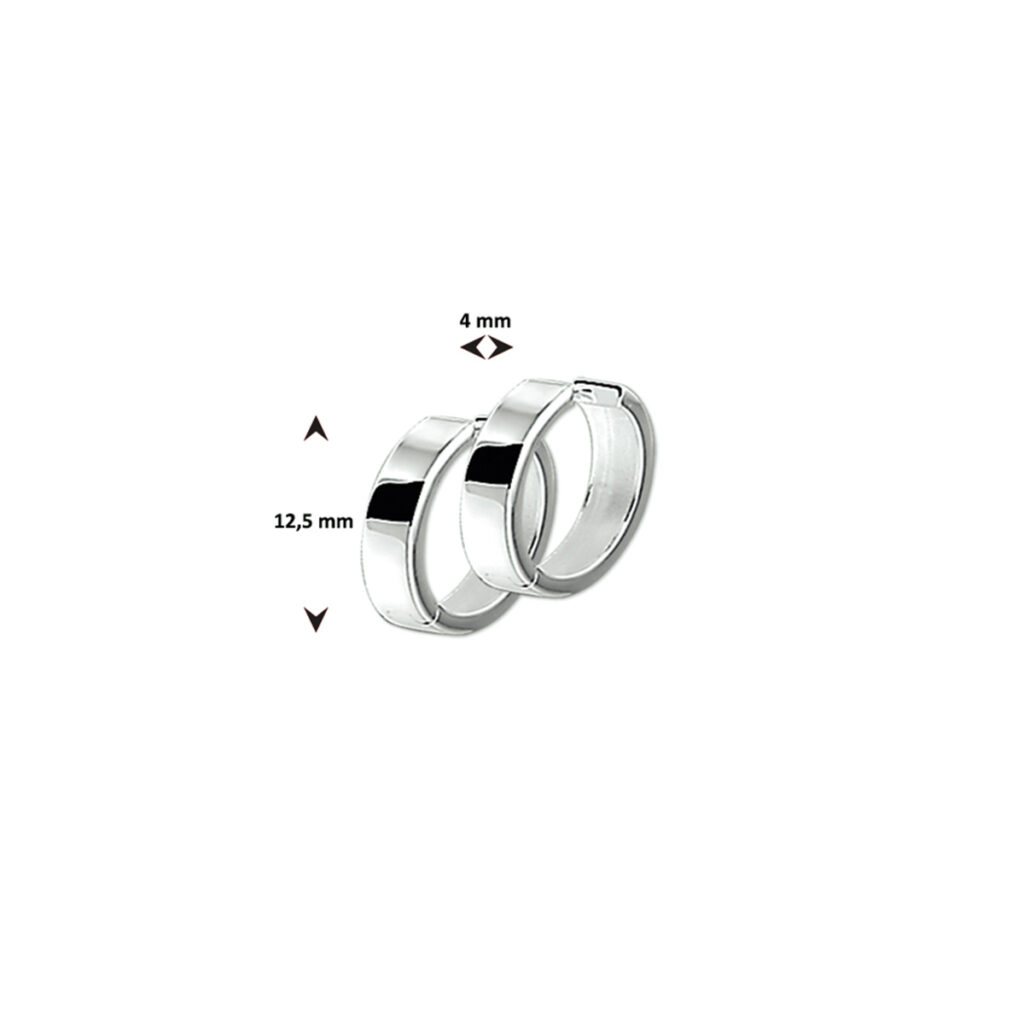 925 zilveren klapoorringen. De oorringen hebben een breedte van 4mm en een diameter van 12.5mm.