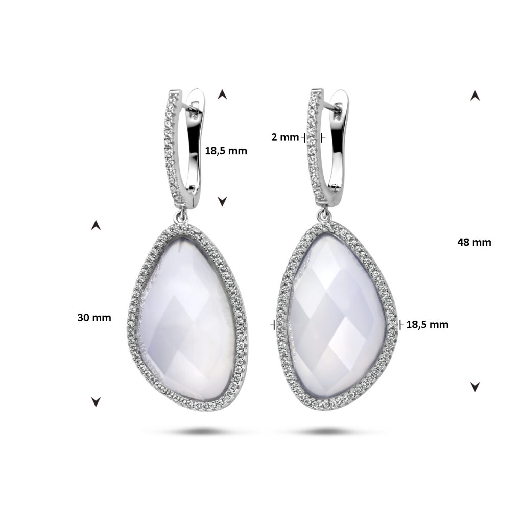 Gerhodineerd 925 zilveren klapoorringen uitgevoerd met chalcedoon en zirkonia. De klapoorringen hebben een totale hoogte van 48mm.