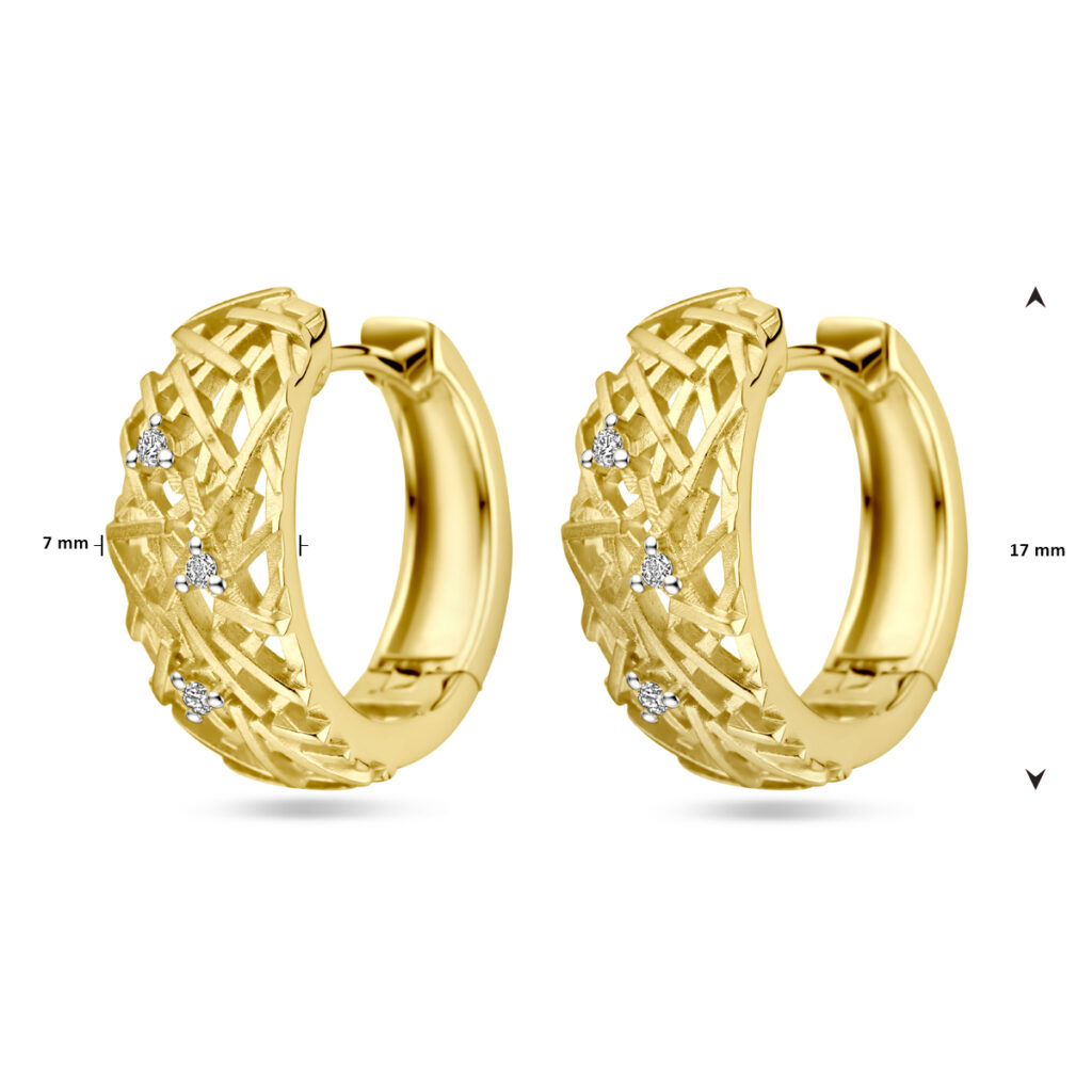 14k Geelgouden klapoorringen uitgevoerd met diamant. De klapoorringen hebben een diameter van 17x7mm. Het diamantgewicht is 0.05ct (2x 0.025ct).