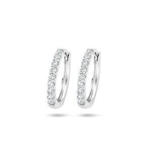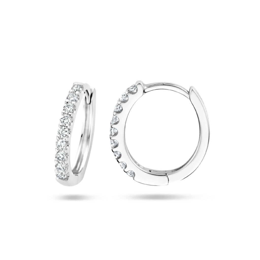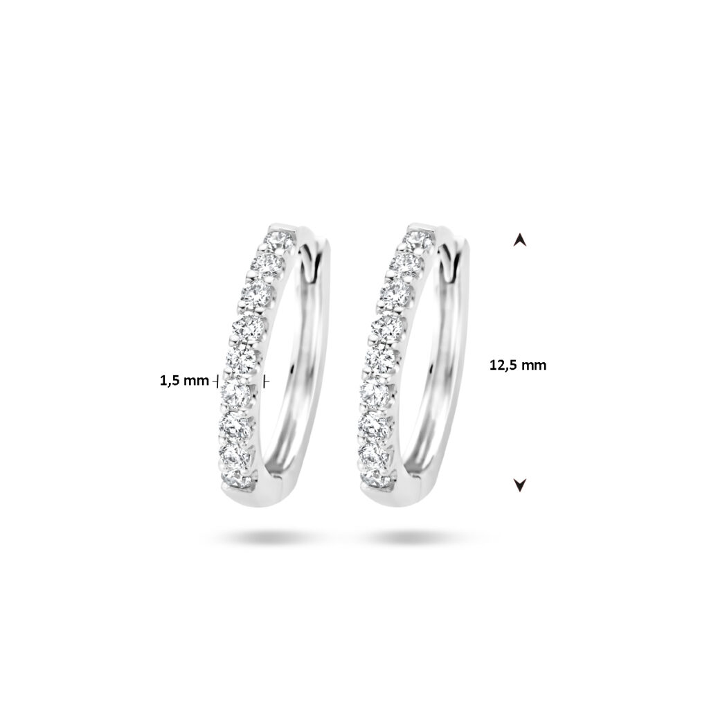 14k Witgouden klapoorringen met een stevig scharnier uitgevoerd met een schitterende diamant rij. De oorringen hebben een afmeting van 12.5×1.5mm.
