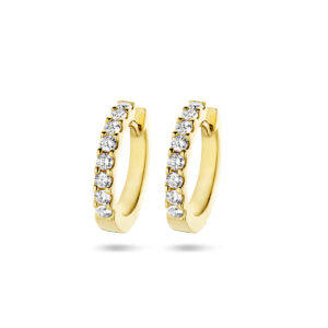 14k Geelgouden klapoorringen uitgevoerd met schitterend diamant. De klapoorringen hebben een afmeting van 15.5×2.5mm.