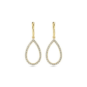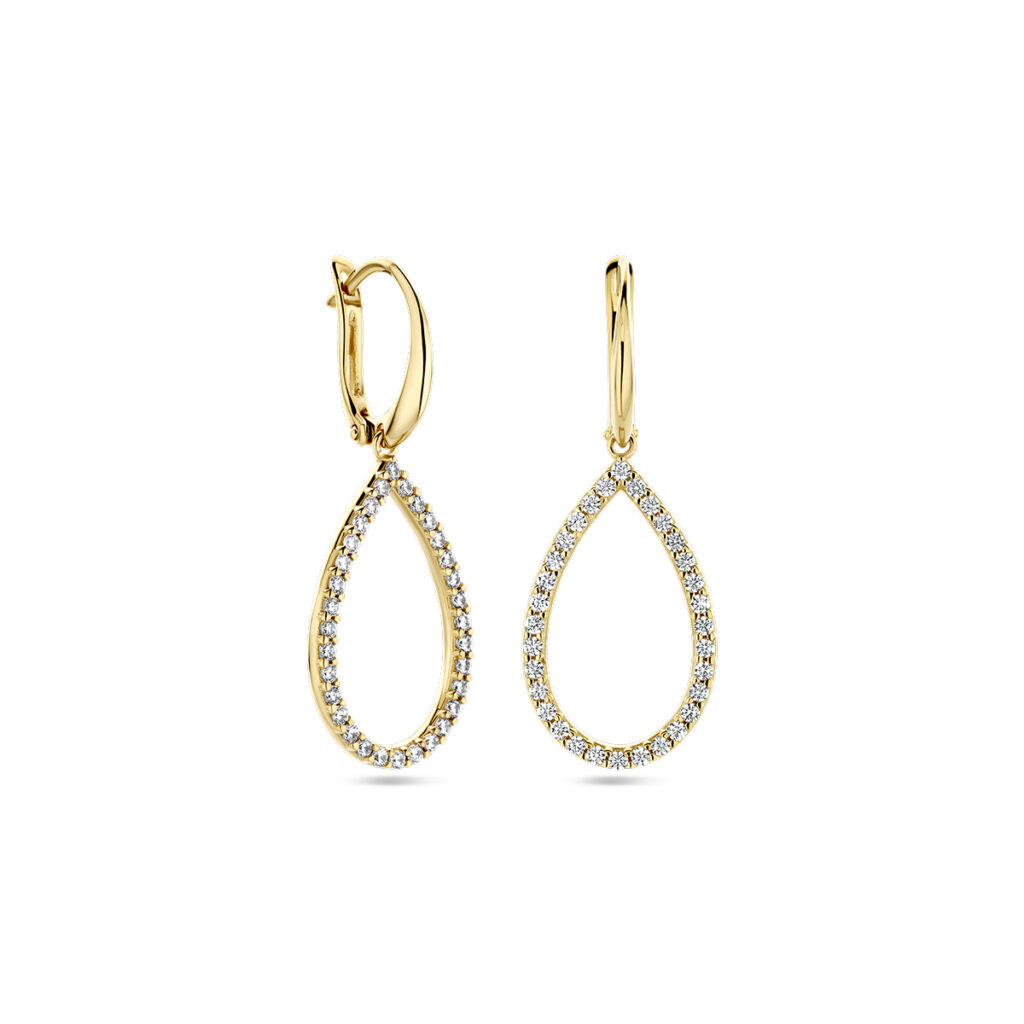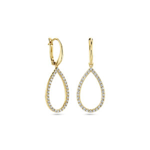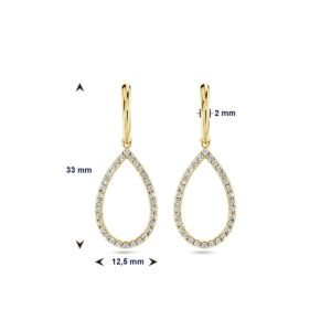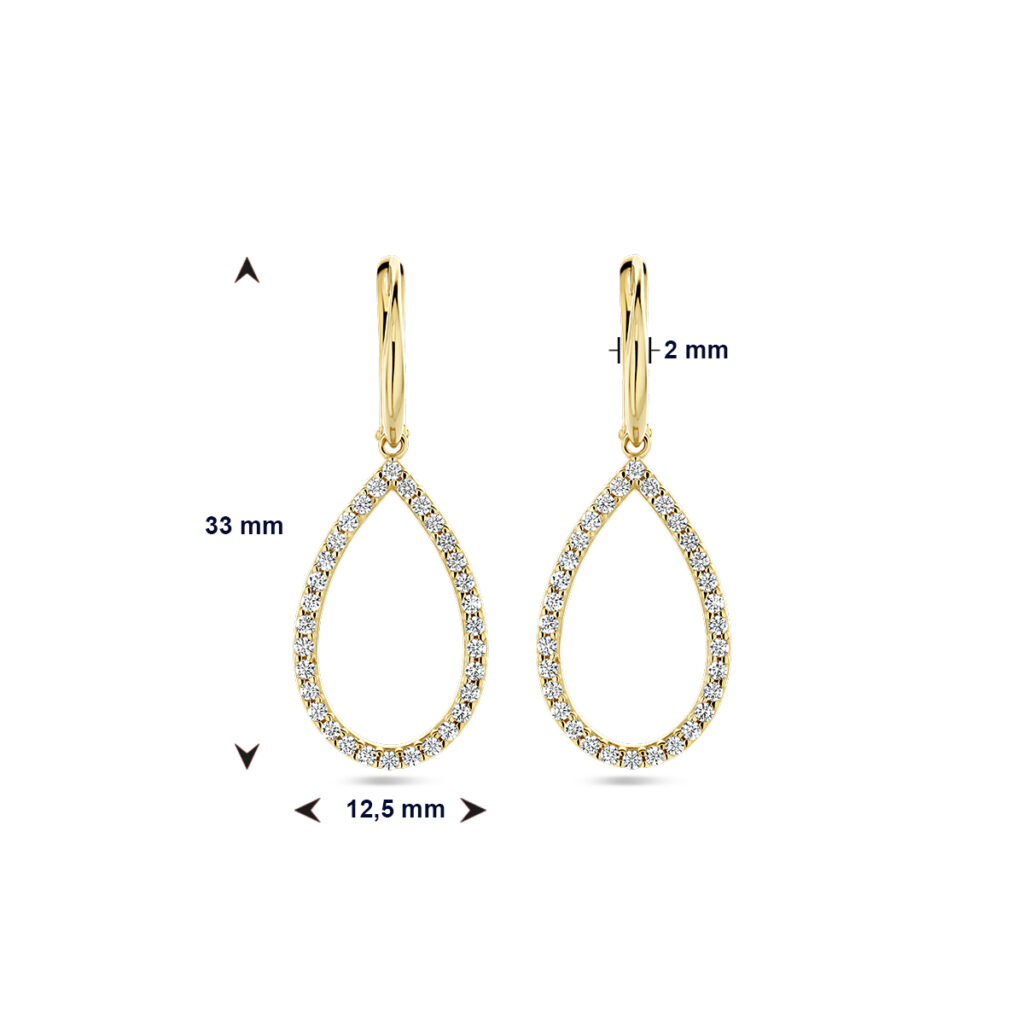 14k Geelgouden klapoorringen met zirkonia. De oorringen hebben een totale hoogte van 33mm.
