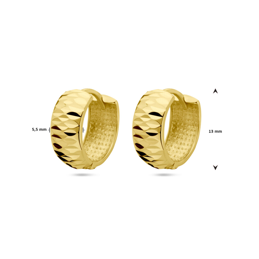 14k Geelgouden klapoorringen met een diameter van 13mm.