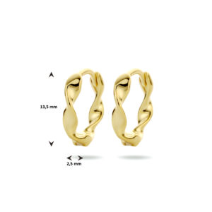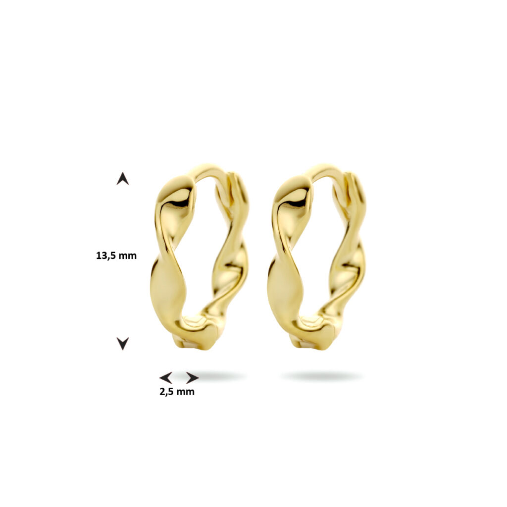 Geelgoud op 925 zilveren klapoorringen. De klapoorringen hebben een afmeting van 13.5×2.5mm.